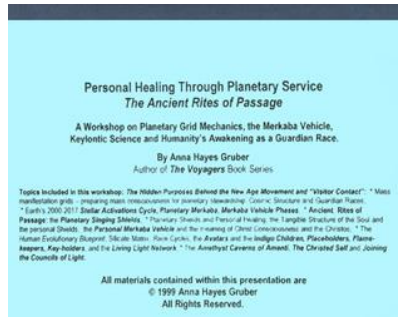 First release of security clearance information on the mechanics of the planetary grids, “Christ Consciousness” and Merkaba. Overview of the ancient knowledge of planetary stewardship and creating personal and planetary healing through serving Higher Evolution.